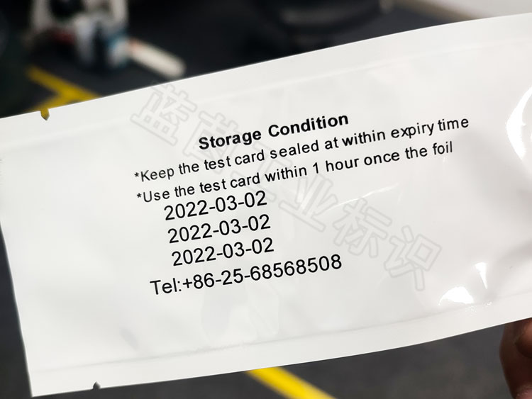 在光滑的鋁箔袋上面噴印,需要高附著、耐擦拭的墨水,UV墨水就可以很好的做到這點(diǎn),UV紫外固化技術(shù),讓墨水瞬間變干,從而形成高附著、清晰、耐擦拭的標(biāo)識(shí)。以下是某客戶在藍(lán)茵打樣的鋁箔袋UV噴碼機(jī)高附著高清噴印效果圖。藍(lán)茵UV噴碼機(jī)可高速穩(wěn)定生產(chǎn),每小時(shí)產(chǎn)量可達(dá)2W+片。