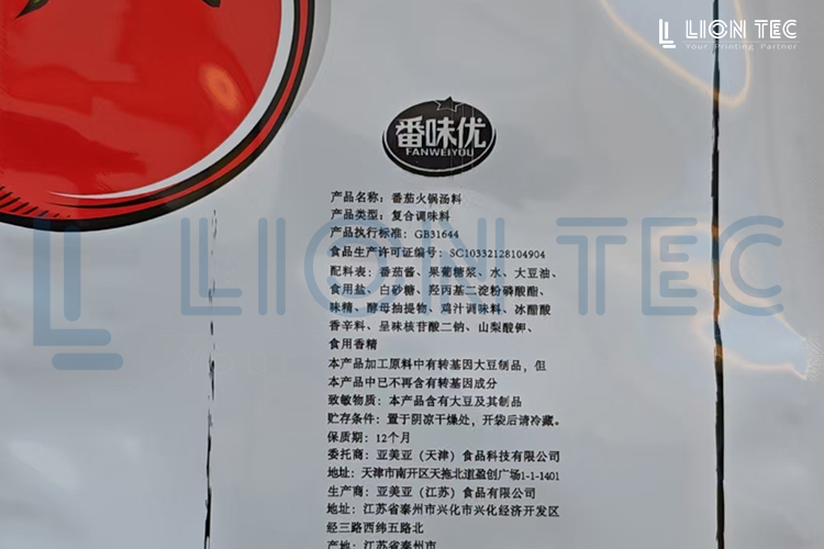 藍(lán)茵UV噴碼機(jī)可實(shí)現(xiàn)在食品塑料pe膜包裝袋上噴印營(yíng)養(yǎng)成份表、logo、產(chǎn)品信息、廠家信息,等寬幅大幅面內(nèi)容,實(shí)現(xiàn)高清晰、高附著噴印效果