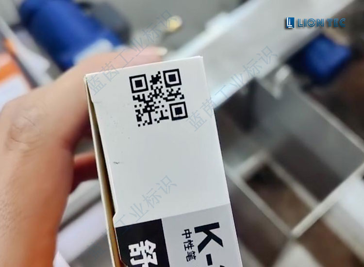 晨光的某款文具紙盒,要求盒子的兩個側面噴上二維碼,要求高解析,高附著。藍茵的UV噴碼機雙頭側噴方案為客戶提供了滿意的噴碼解決方案